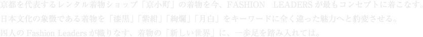 京都を代表するレンタル着物ショップ『京小町』の着物を今、FASHION LEADERSが最もコンセプトに着こなす。