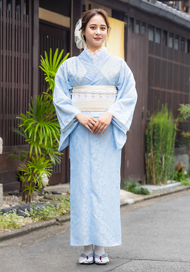 由京小町預先搭配好的和服組合,包含腰帶、鞋、襪、小配件等以及穿衣服務。